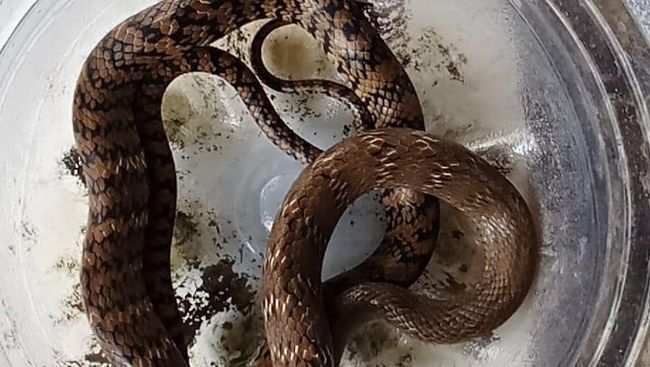 "Bersembunyi di kotak mesin pompa air. Kemudian kita amankan ternyata ular jali atau dumung macan sekitar 1 meter panjangnya," ungkap Eko.