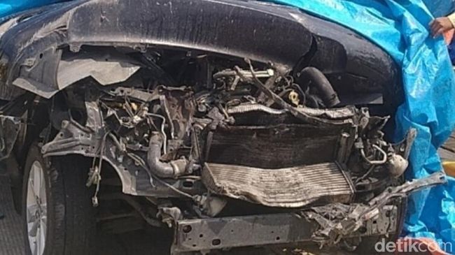 Benturan keras dengan truk belakang truk menyebabkan kap mesin terangkat meremukkan mesin Innova. Benturan juga berdampak pada kabin Innova bagian depan yang penyok dan hancur, terutama bagian kursi pengemudi dan penumpang di sampingnya.