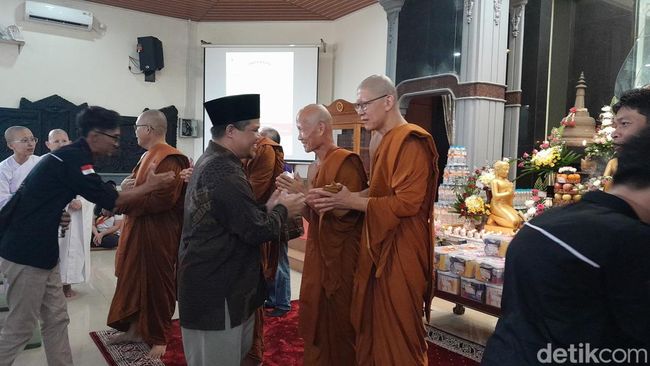 "Bukan kita mencampuradukkan agama, tapi kita saking memberi penghormatan karena kebahagiaan yang dirasakan saudara kami yang hari ini merayakan Tri Suci Waisak," tuturnya.