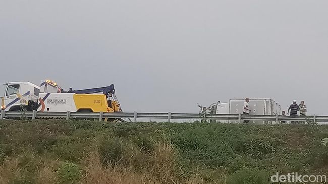 Pantauan detikJateng di lokasi pukul 17.00 WIB, mobil boks terguling di bahu jalan tol. Mobil boks menghadap ke utara.