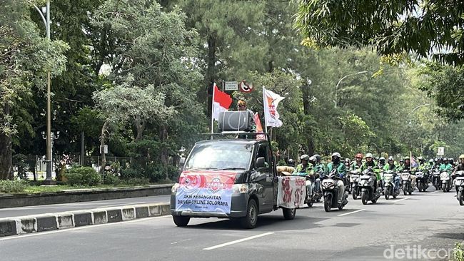 Massa ojol terpantau berkumpul di Manahan sejak pagi dan melakukan konvoi menuju Kantor DPRD Solo. Mereka lalu melakukan aksi untuk menyuarakan tuntutannya.