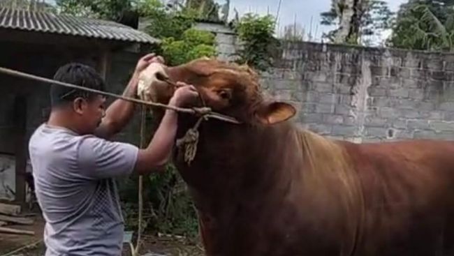 "Minimal yang dicari berat 800 kg. Kami sudah periksa darahnya dan tidak ditemukan adanya penyakit menular di sapi itu sampai hari ini. Mudah-mudahan sampai hari H," pungkasnya.