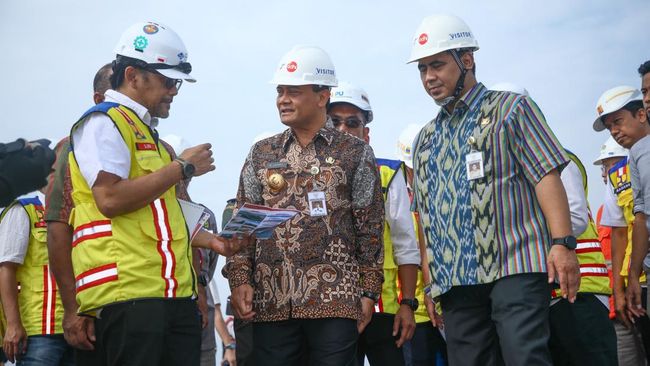 "Bisa dilihat ini adalah bentuk giant sea wall atau tanggul laut. Insyaallah Januari nanti sudah fungsional, belum operasional. Minimal kalau fungsional ini sudah mengatasi rob itu sendiri," tambahnya.
