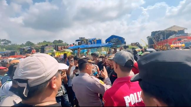 Petugas gabungan polisi bersama TNI menertibkan karnaval yang menggunakan sound horeg di Desa Bendokaton, Kecamatan Tayu, Kabupaten Pati. Proses mediasi sempat berlangsung alot, namun akhirnya disepakati penggunaan sound horeg tanpa keliling ke permukiman desa.