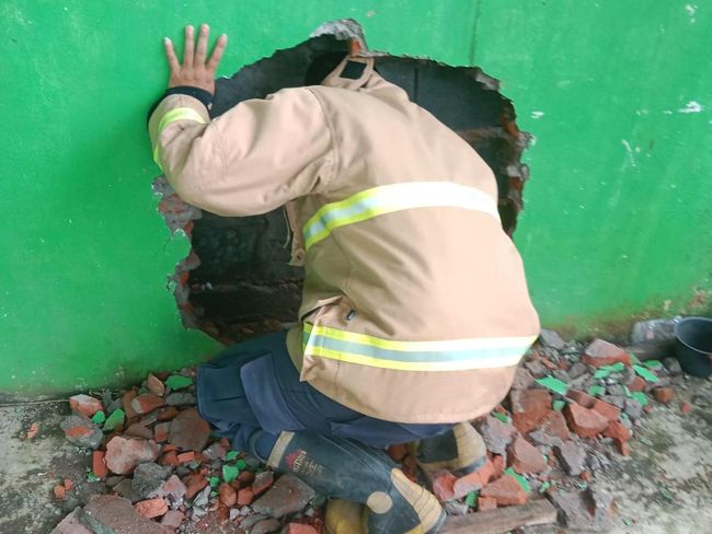 "Kami terima laporan ada orang terjepit di tembok. Karena Khawatir tubuh korban cedera akhirnya kami terpaksa membobol tembok," kata Rizal, dikutip dari detikJatim.