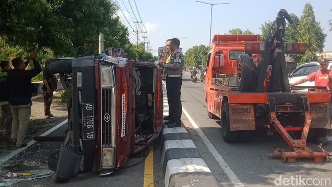 Pantauan detikJateng, kondisi mobil kijang nomor polisi AB 1708 VB terbalik di jalur lambat arah Jogja ke Klaten. Mobil Kijang yang mestinya menghadap ke arah Kota Klaten berbalik arah ke arah Jogja dengan kondisi terjungkal.