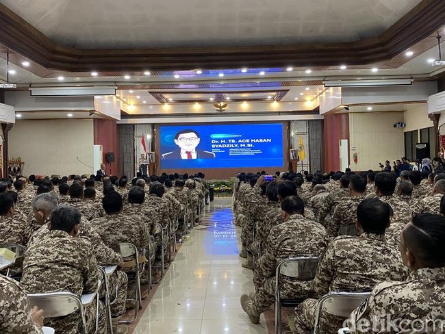 Mereka mendengarkan materi yang disampaikan Gubernur Lembaga Ketahanan Nasional RI, Ace Hasan Syadzily. Para peserta retret tampak menyimak dan mencatat materi yang disampaikan.