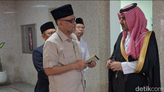 Kepala Badan Penyelenggara Haji (BP Haji) Mochamad Irfan Yusuf menggelar pertemuan bersama Deputi Menteri Haji Arab Saudi. Pria yang akrab disapa Gus Irfan itu menyinggung kuota haji Indonesia berpotensi berkurang hingga 50 persen pada 2026.