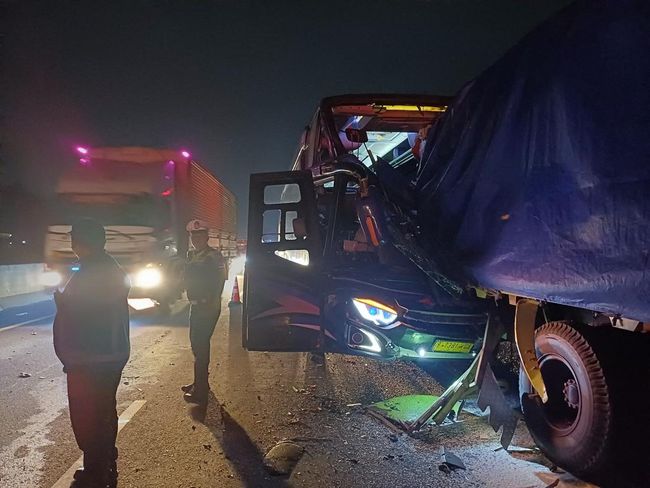 "Kejadian berawal saat kendaraan bus dari arah Solo ke Jakarta berjalan di lajur cepat. Namun saat di lokasi kejadian muncul truk bermuatan beras dari Sragen menuju ke Jakarta yang hendak menyalip kendaraan di depannya. Karena jarak yang sudah dekat, bus menghantam bagian belakang truk tersebut," kata Lingga dalam keterangannya, Kamis (12/6/2025).