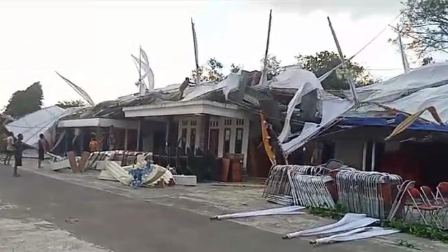 "Untuk terop (tenda hajatan) semua rusak beterbangan dan beberapa rumah, termasuk yang punya hajatan beterbangan. Satu tiang listrik putus, satu retak," kata relawan Juwiring, Ikhsanudin kepada detikJateng, Sabtu (14/6/2025) sore.