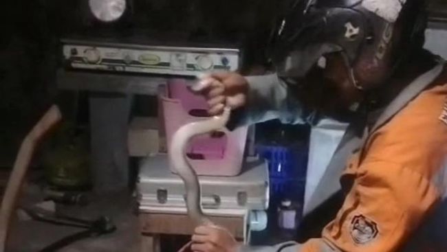 "Kobra jawa atau naja sputatrix dengan panjang 1,5 meter. Sudah besar, ukuran jumbo, sementara diamankan untuk nantinya dilepasliarkan ke lokasi yang jauh dari permukiman," ungkap Raditya.