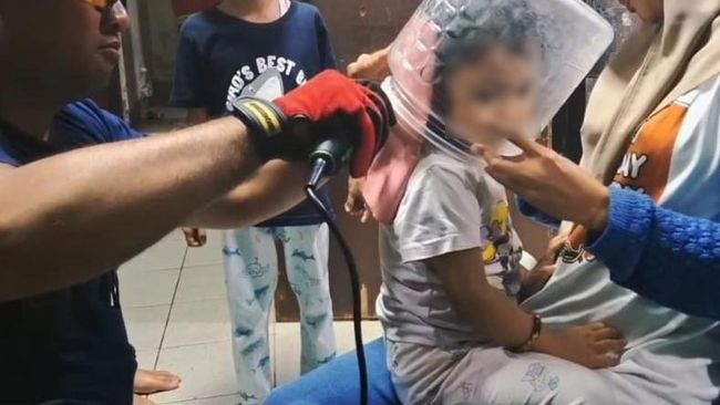"Alhamdulillah si anak tidak menangis (saat proses pelepasan). Karena kita ajak main dulu, cerita terkait Damkar. Dibantu ibunya juga tenang bisa diselesaikan. Kurang lebih 5 menit (bisa dilepaskan)," tambah Edi.