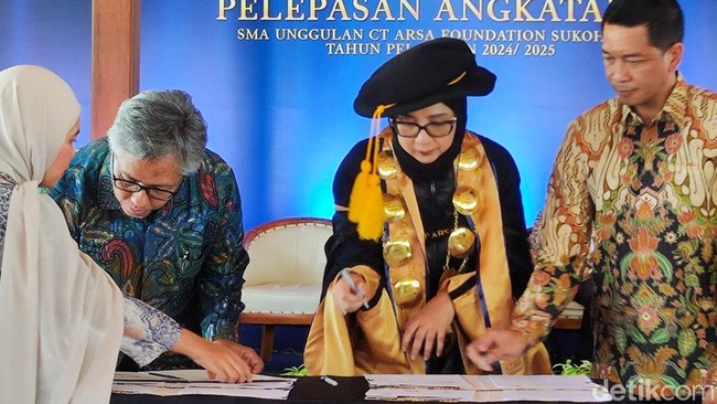 Penandatanganan MoU itu dilakukan pada pelepasan siswa angkatan V SMA Unggulan CT Arsa Sukoharjo di Kecamatan Bendosari, Sabtu (28/6/2025). Adapun MoU itu diteken oleh Ketua Yayasan CT Arsa Foundation Anita Ratnasari Tanjung, Rektor ITS Bambang Pramujati, dan Rektor ITB Tatacipta Dirgantara.