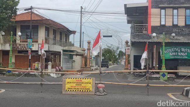 Penutupan dilakukan warga dengan memasang pagar bambu. Pagar bambu tersebut ditempeli bendera merah putih dan diberi lampu.
