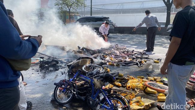 "Ini sepeda jualan, milik sendiri. Ada 15 unit. Yang kebakar kira-kira setengahnya. (Kerugiannya?) Mungkin Rp 15 juta," ujarnya.