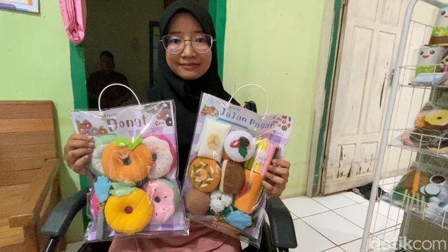 Ditemui di rumahnya di Kelurahan Parakancanggah, Retno begitu ia akrab disapa terlihat tengah duduk di atas kursi roda. Tangannya lincah dan cekatan memotong kain flanel menjadi bentuk-bentuk lucu. Seperti donat, wortel, sate, hingga aneka kue pasar.