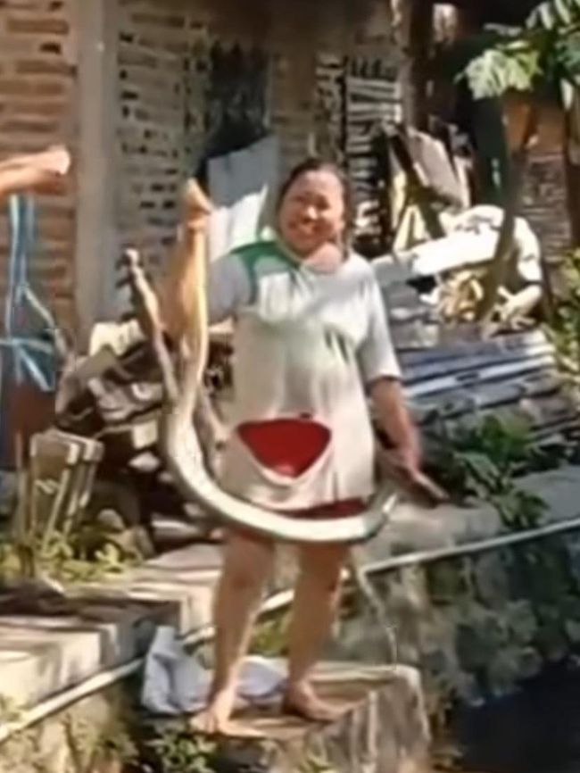 Seorang ibu-ibu bernama Lis di Semarang viral di media sosial. Sebab, dia menangkap seekor ular sanca sepanjang sekitar 2 meter menggunakan tangan kosong.
