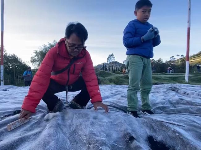 "Dari tadi malam sudah terasa dingin. Jam 10 malam suhu udara sudah turun di angka 3 derajat celsius," ujarnya.