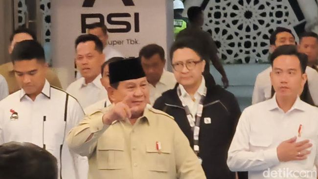 Presiden Prabowo Subianto menghadiri kongres Partai Solidaritas Indonesia (PSI) di Solo. Prabowo dan rombongan disambut lagu selamat datang yang berisi dua periode.