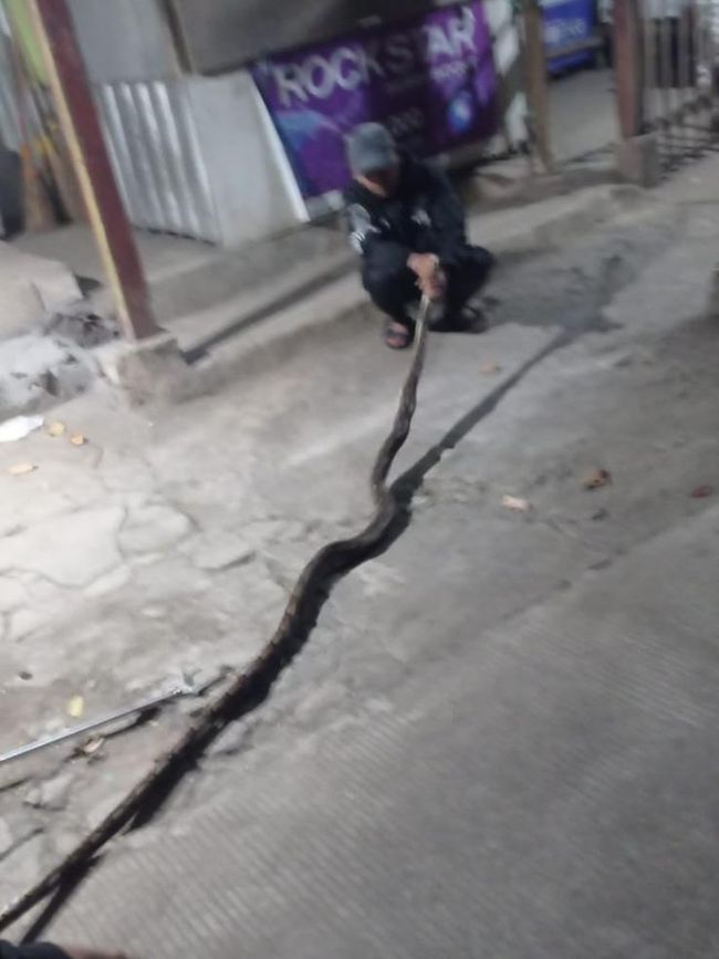 "Mungkin ular itu lapar, karena pada waktu itu ditemukan tikus di samping lubang. Setelah ditangkap dibawa sama teman-teman remaja yang bantu evakuasi," tandasnya.