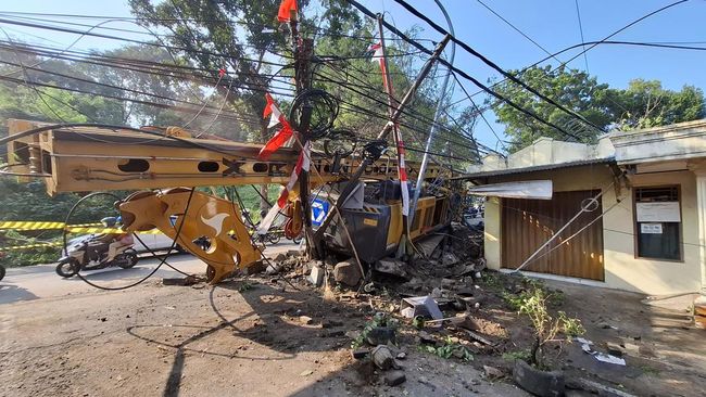 Kecelakaan truk pengangkut alat berat terjadi di Gombel Lama, Kota Semarang. Truk oleng dan menimpa rumah.