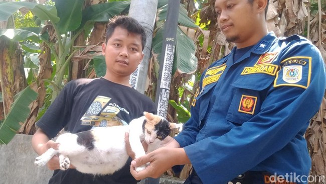 "Tadi evakuasi sekitar 15 menit. Kedalaman sumur sekitar 8-10 meter, kucing kondisinya selamat," lanjut Nugroho.