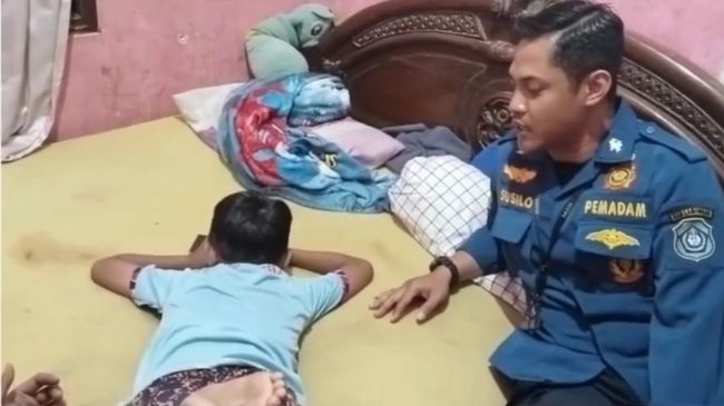 Mendapati laporan itu, petugas damkar langsung meluncur ke lokasi dan mencoba menenangkan sang anak yang masih mengamuk. Petugas damkar berulang kali mengajak ngobrol agar sang anak bersedia bercerita.