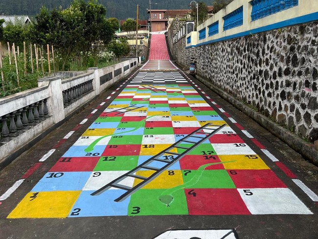 Jalanan tersebut dihiasi mural dengan segala macam jenis permainan, seperti ular tangga maupun papan catur. Suparmo mengungkapkan idenya muncul secara spontan.