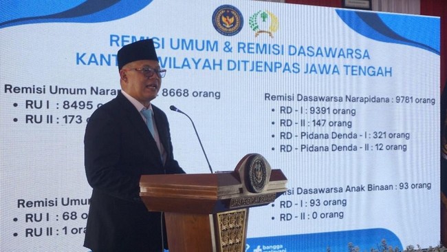 Ribuan warga binaan di Jawa Tengah mendapat kado remisi dalam rangka HUT ke-80 RI. Total ada 8.737 narapidana dan anak binaan yang memperoleh Remisi Umum serta 9.964 orang mendapat Remisi Dasawarsa.