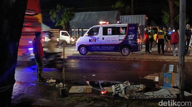 Warga yang datang kemudian menutup dua korban dengan kardus menunggu ambulans datang. Kemudian dua jenazah itu dibawa ambulans, sedangkan terlihat anggota Satlantas Polrestabes Semarang masih menanyai sejumlah saksi.