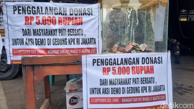 "Posko ini penggalangan donasi Rp 5 ribu dari masyarakat Kabupaten Pati untuk akomodasi kita yang mana aliansi Masyarakat Pati Bersatu akan melakukan demo di gedung KPK RI di Jakarta," kata Supriyono alias Bothok kepada wartawan di lokasi, Rabu (20/8/2025).