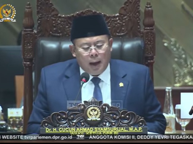 "Setuju," jawab peserta sidang. Cucun kemudian mengetukkan palu.