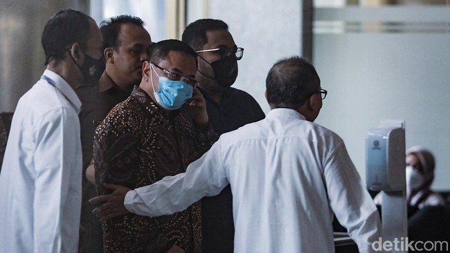 Saat tiba di gedung KPK, dia terlihat mengenakan masker.