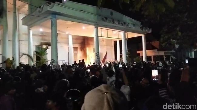 Demonstrasi yang terjadi di Kota Tegal malam ini sempat ricuh. Massa mendatangi dan merusak sejumlah fasilitas seperti kantor polisi dan gedung DPRD.