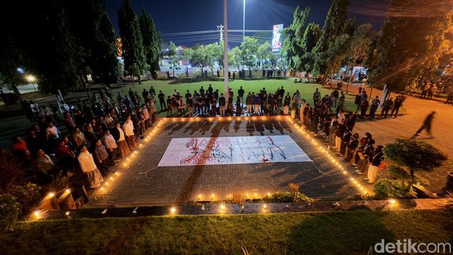 Sekitar 100 mahasiswa yang tergabung dalam PMII, HMI, dan GMNI menggelar aksi "September Hitam" di halaman Gedung DPRD Rembang, Kamis (4/9/2025) malam. Mereka kompak mengenakan pakaian hitam dan menyalakan lilin membentuk formasi persegi.