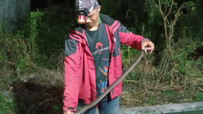 "Ularnya jenis ular kobra jawa (Naja Sputatrix) berbisa tinggi dengan panjang 1,5 meter termasuk ukuran yang sudah dewasa," sebut Raditya.