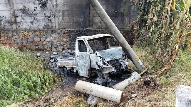 Pantauan detikJateng di lokasi terlihat mobil pikap masih berada di lokasi kejadian siang tadi. Mobil itu terlihat ludes terbakar setelah oleng menabrak tiang listrik di pinggir jalan Lingkar Selatan tepatnya Desa Dengkek, Kecamatan Pati.