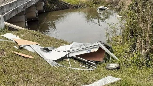 "Mobilnya hancur gitu, bagian kepala mobil sampai masuk ke embung air itu," lanjutnya.