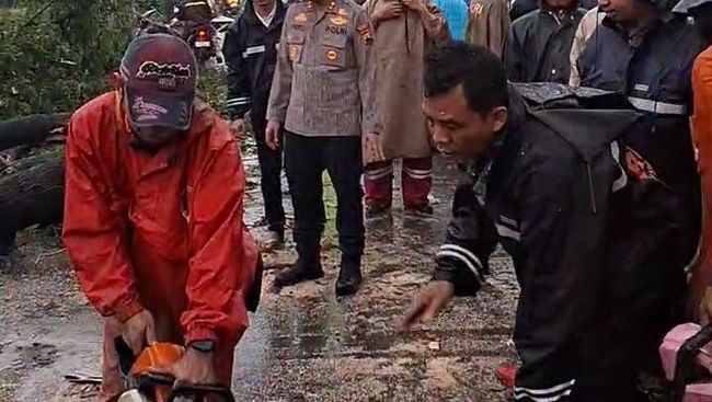 "Pada hari ini pukul 15.30 WIB dilaporkan pada sore hari ini di jalur Pantura Timur tepatnya di depan Mitsubishi motor ada kejadian pohon tumbang menimpa satu kendaraan truk tronton dan satu korban masih kita evakuasi," kata Harinto saat dihubungi, Jumat (24/10/2025).