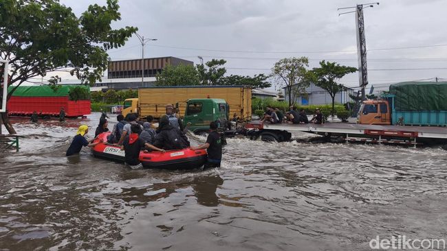 Sudah tiga hari banjir melumpuhkan Jalur Pantura Semarang. Titik terdalam banjir ini ada di depan komplek RSI Sultan Agung Semarang dengan ketinggian mencapai 80 sentimeter.