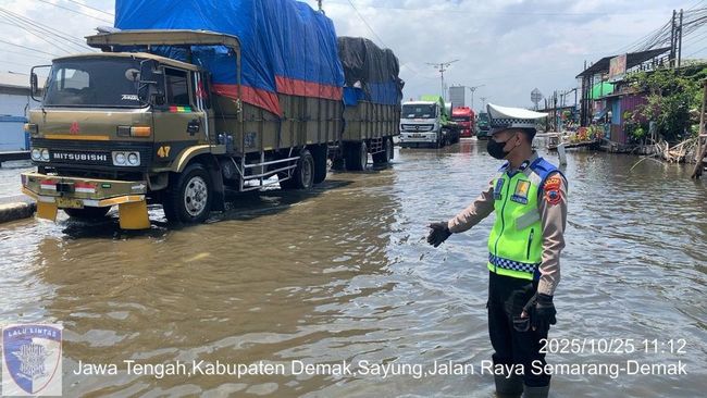 Kanit Turjagwali Satlantas Polres Demak, Iptu M Khaerur Rokhman, mengatakan air yang menggenangi jalan itu sudah mulai surut. Ketinggiannya kini berkisar 25-30 sentimeter.