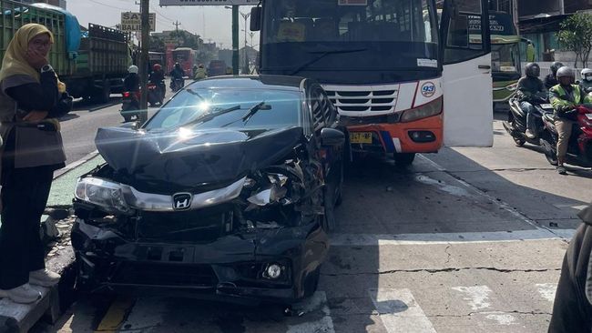 Kecelakaan terjadi sekira pukul 08.00 WIB. Kendaraan yang terlibat adalah satu unit bus, tiga unit mobil, dan satu sepeda motor.
