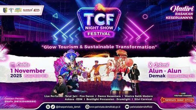 "TCF Night Show Festival juga ditayangkan live di YouTube Channel Pariwisata Demak Official," jelas Endah.