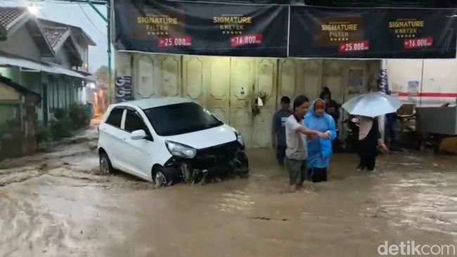 "Kerugian materi, tiga rumah roboh di RT 3 RW 5, terus ada mobil yang terseret banjir," ujarnya Sabtu petang.