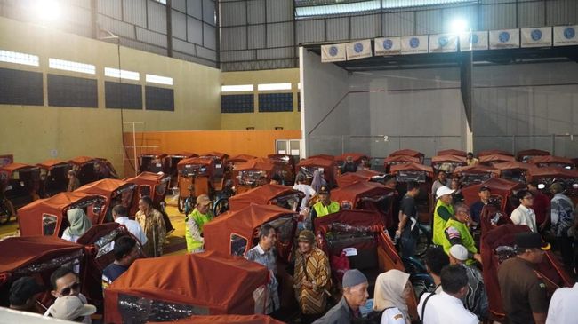 Para pengayuh becak di Kabupaten Jepara tampak antusias menerima bantuan 100 unit becak listrik dari Presiden RI Prabowo Subianto. Bantuan ini diberikan oleh Bupati Jepara, Witiarso Utomo, bersama jajaran Pemerintah Kabupaten Jepara, perwakilan Badan Percepatan Pengentasan Kemiskinan (BP Taskin) RI, dan Yayasan Gerakan Solidaritas Nasional (YGSN) di Gelora Bumi Kartini Jepara.