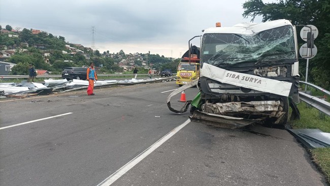 "Truk tangki Isuzu terlempar ke arah berlawanan dan terjadi laka dengan Toyota Rush. Di saat yang bersamaan, Mercedez Benz Tractor Head terus melaju mengenai guardrill pembatas tengah jalan sampai menabrak Toyota Alphard warna putih yang melaju dari arah berlawanan juga," ungkap Novita.