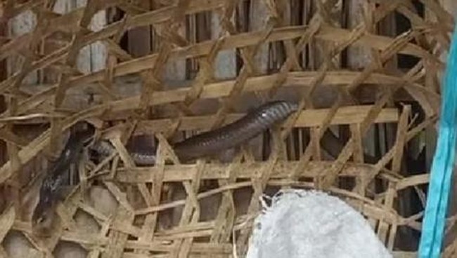 Badan ular, ungkap Ngadino, terjepit bambu di bagian atas anus dan tidak bisa bergerak. Kemungkinan tulang-tulang sudah patah.