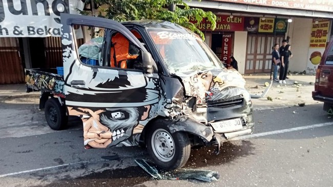 Tabrakan antara mobil pikap Gran Max dan Innova terjadi di jalan Jogja-Solo, simpang empat Stasiun Prambanan, Klaten. Mobil pikap pengangkut buah menabrak mobil Innova dan tiang listrik.