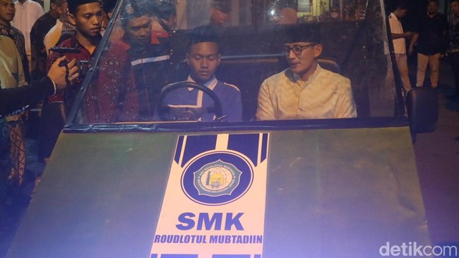 "Tadi saya coba naik kendaraan listriknya, hati-hati Elon Musk, karena sebentar lagi Tesla akan disaingi SMK Balekambang," ujar Sandiaga Uno.
