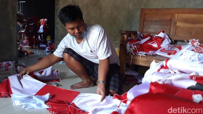 Aktivitas menjahit bendera merah putih dan umbul-umbul tersebut dilakukan di rumahnya. Dia dibantu ibu dan seorang tetangganya untuk memenuhi pesanan dari masyarakat.